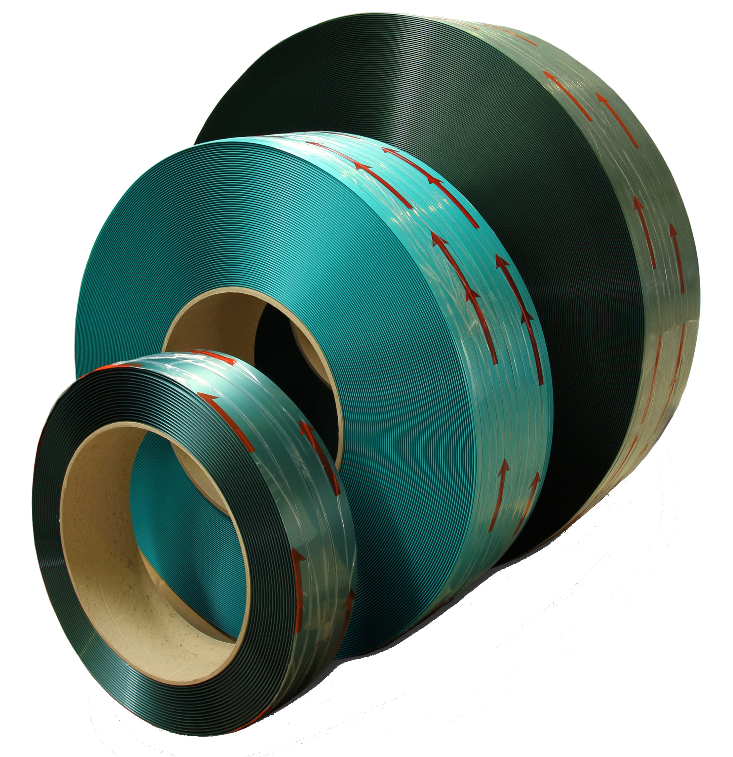 Die Herstellung von PET-Umreifungsband erfolgt durch einen kontinuierliche Extrusionsprozess, bei dem das PET- Material, Farbe und andere Zusatzstoffe nach vorgegebenen Parametern gemischt und anschließend aufgeschmolzen werden. Die PET-Schmelze wird nach dem Extrusionsprozess durch Mehrschlitzdüsen gepresst, die so entstandenen Rohbänder werden abgekühlt und anschließend gereckt. Während des Reckvorgangs erhalten die Rohbänder ihre festgelegte Dimension, ihre erforderliche Zugfestigkeit und Dehnung. Am Ende dieses Verfahrens werden die PET- Bänder mit der erforderlichen Lauflänge auf Hülsen gewickelt und abschließend palettiert und kommissioniert.